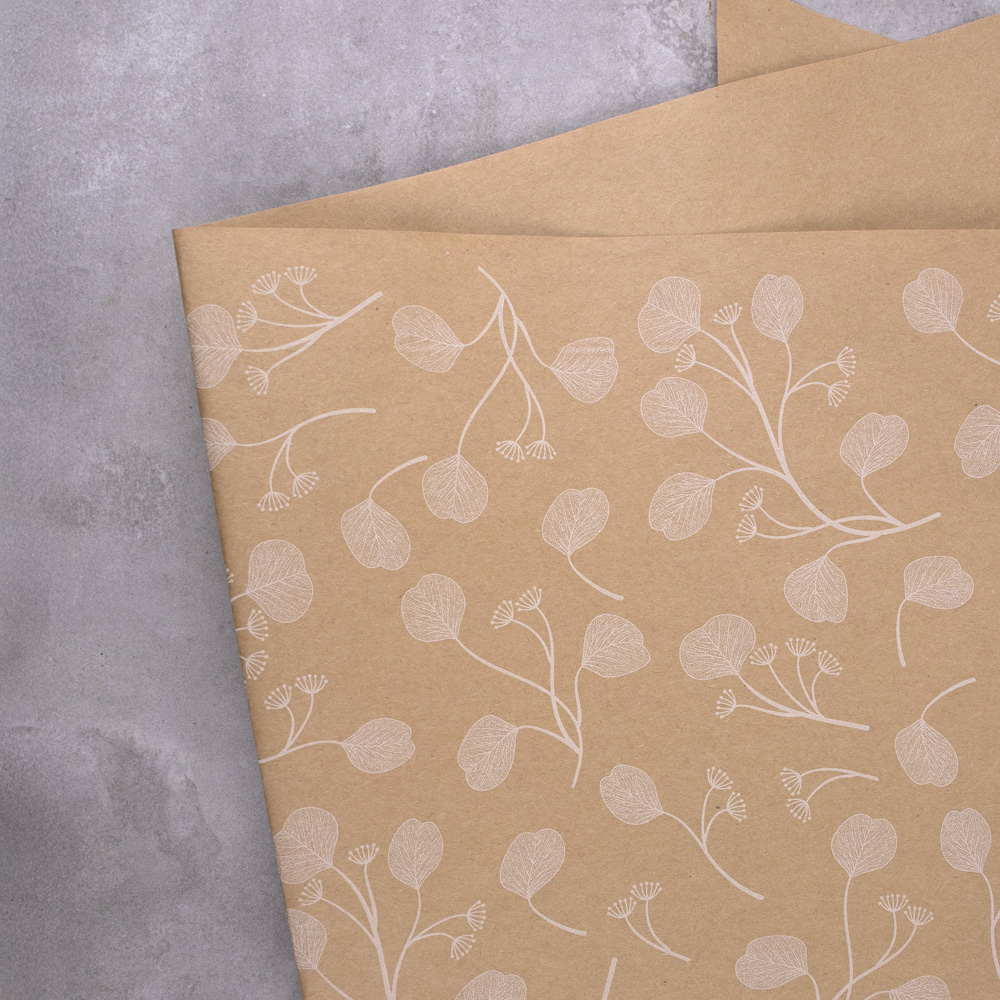 605-120 KRAFT SLEEVE 6 ROSES W/EUCALYPTUS, NATURAL/WHITE, 5"X14"X30", PK(10)