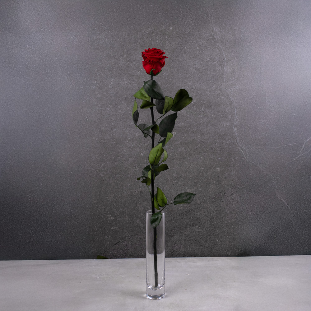 651-530 PRESERVED ROSE ON STEM, LIGHT RED (RED-02), L: 27", BOX(1)