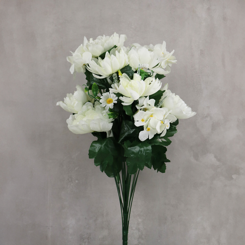 655-106 BUSH OF PEONIES/MUMS/HYDRANGEAS, BLANC, 25"