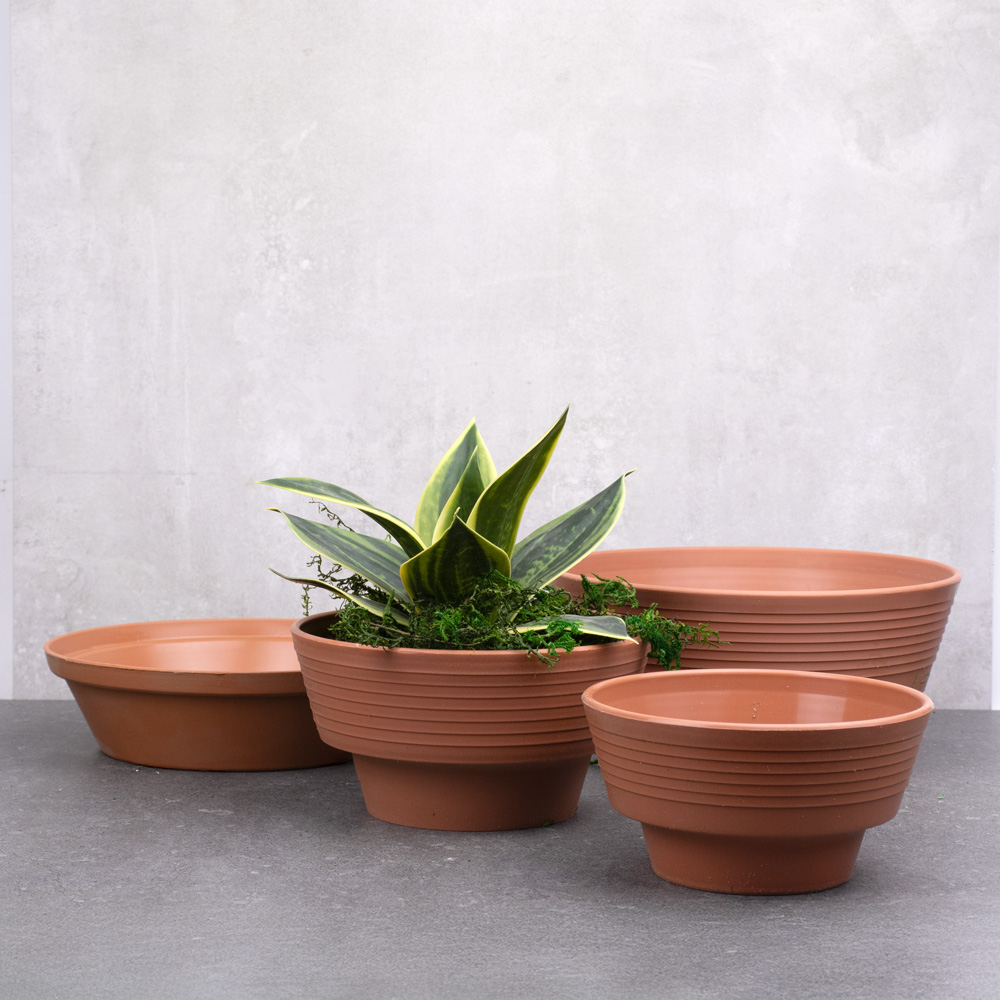 751-218 PLASTIC ROUND PLANTER, CLAY, 8"