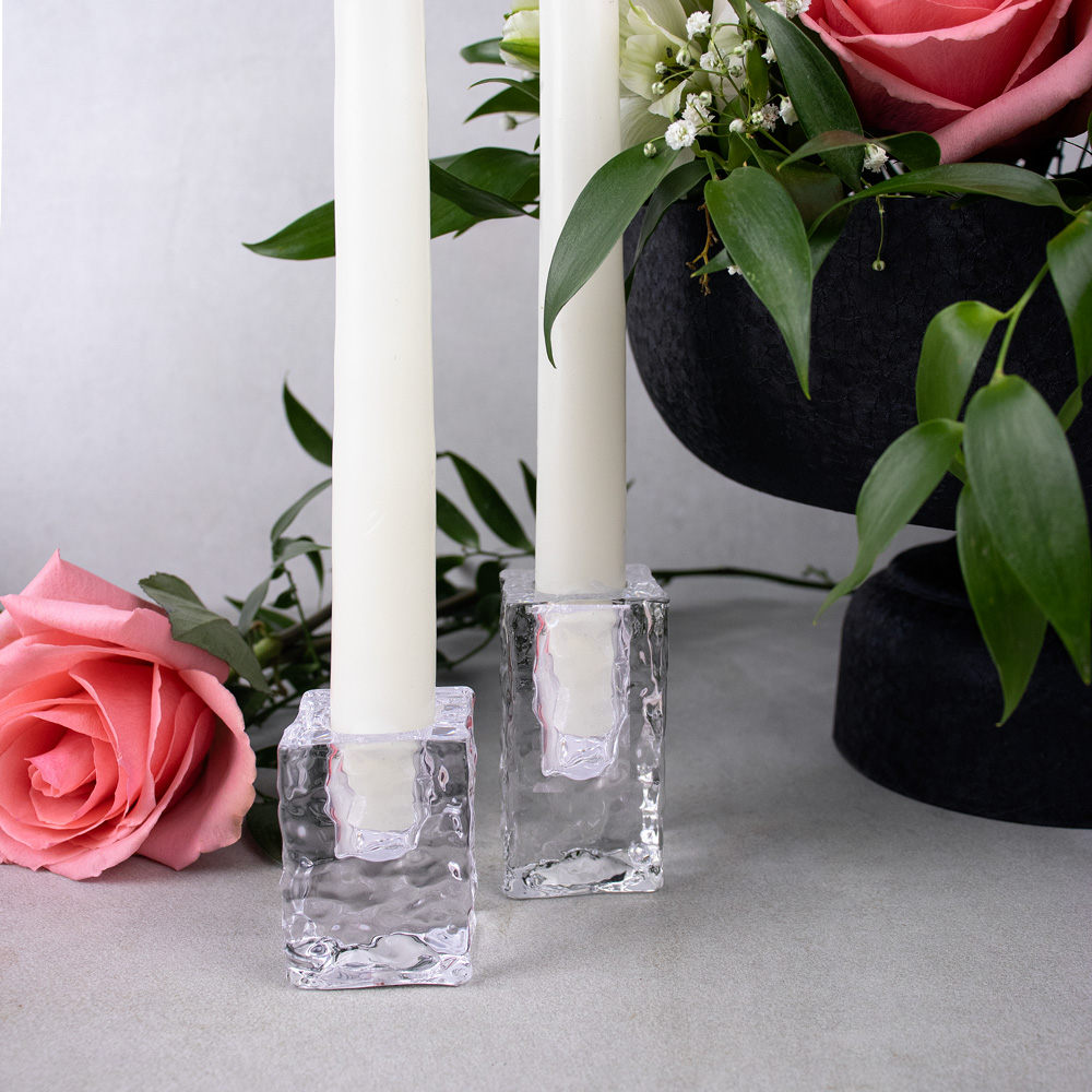 752-004 SQUARE ICE GLASS CANDLE HOLDER, CLEAR, 1½“ x 2½”, BOX (12)