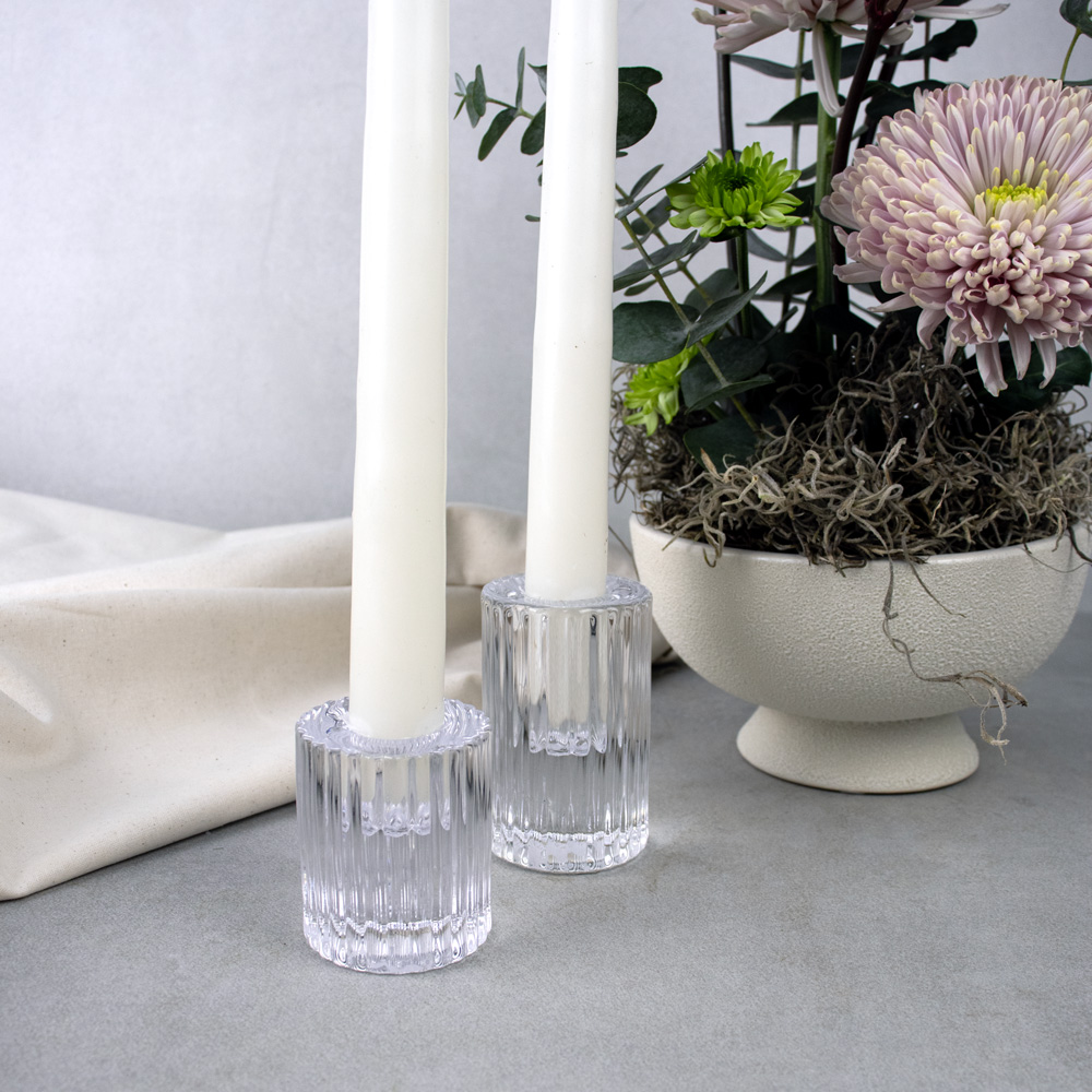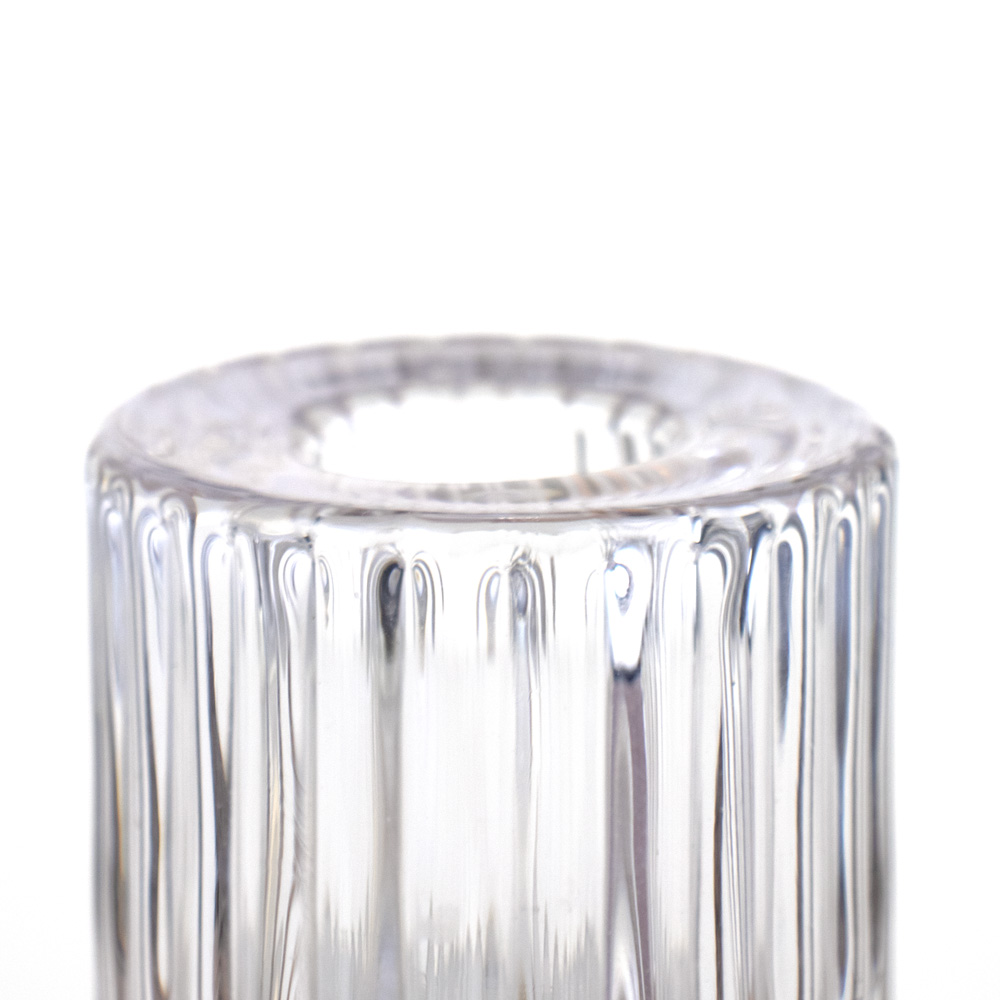 752-008 ROUND FLUTED GLASS CANDLE HOLDER, CLEAR, 1½“ x 2½”, BOX(12)