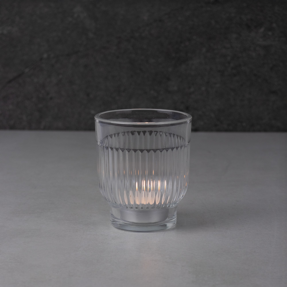 753-031 GLASS CANDLE HOLDER(TEA LIGHT), CLEAR, Ø3“ x 3½”, BOX(8)