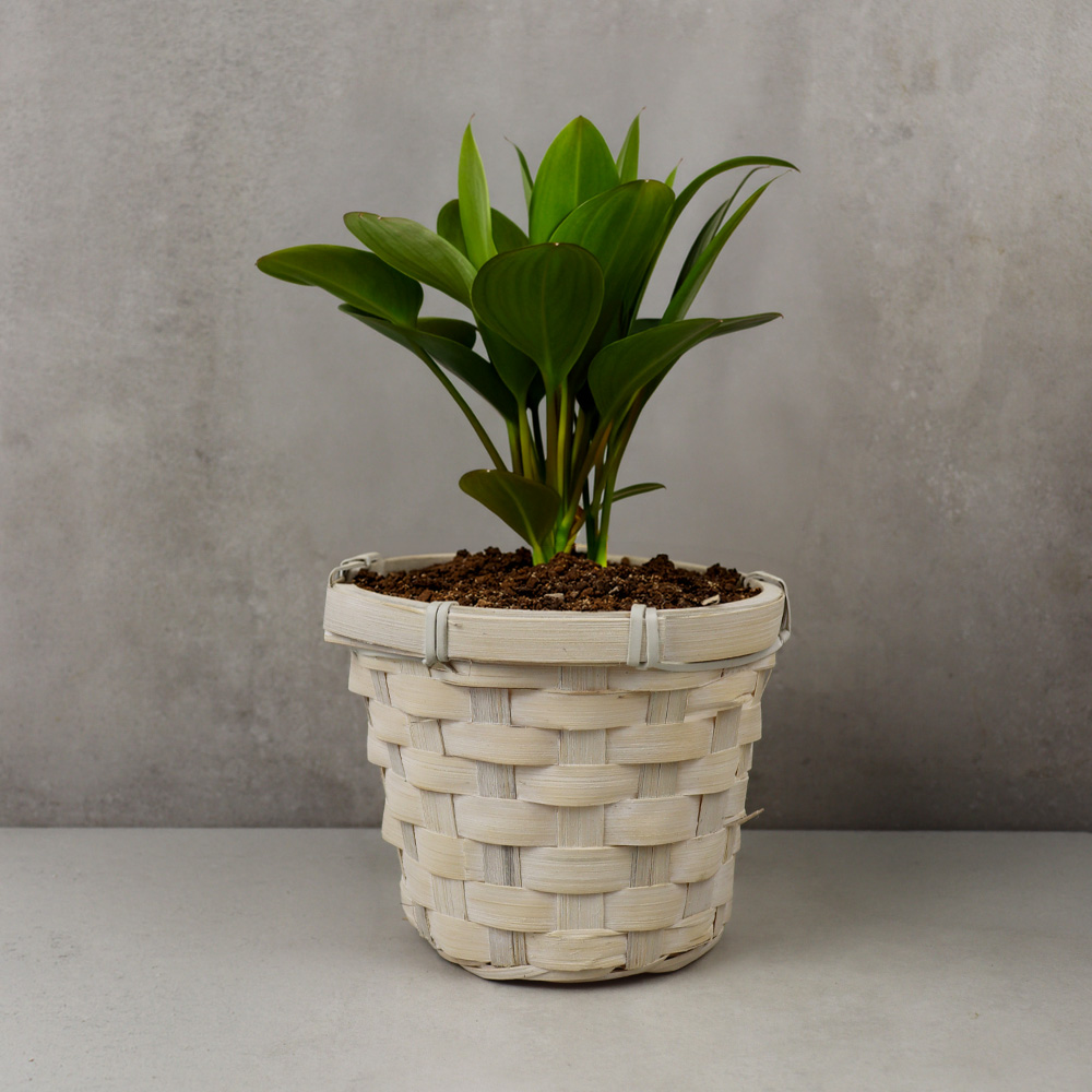 803-586 4"(10CM)WHITE WASHED ROUND POT COVER BASKET WITH LINER