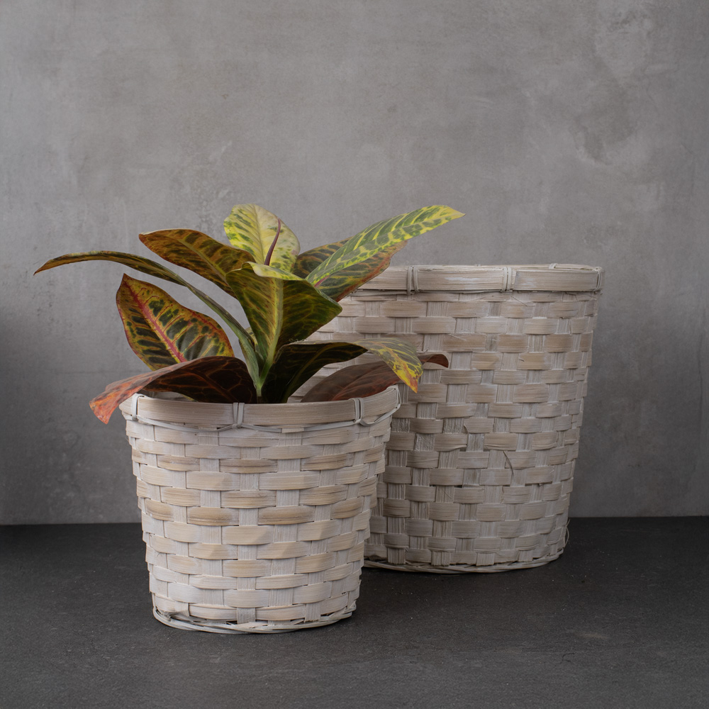 803-587 6"(15CM) WHITE WASHED ROUND POT COVER BASKET WITH LINER