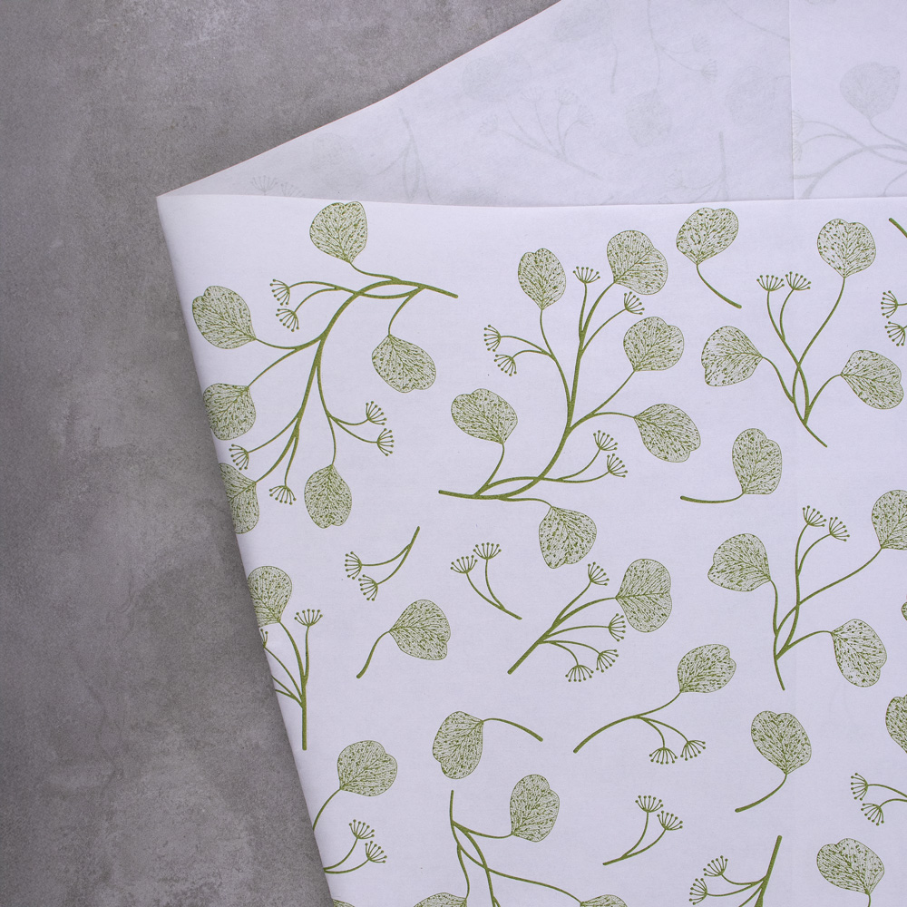 605-111 MANCHON 12 ROSES AVEC EUCALYPTUS, BLANC/VERT, 4½"x19"x30", PQT(10)