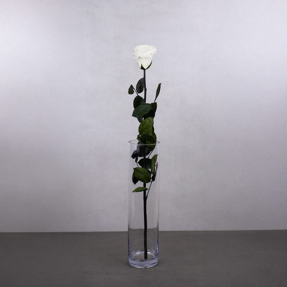 651-531 ROSE PRÉSERVÉE SUR TIGE, BLANCHE (WHI-01), L: 27", BTE(1)