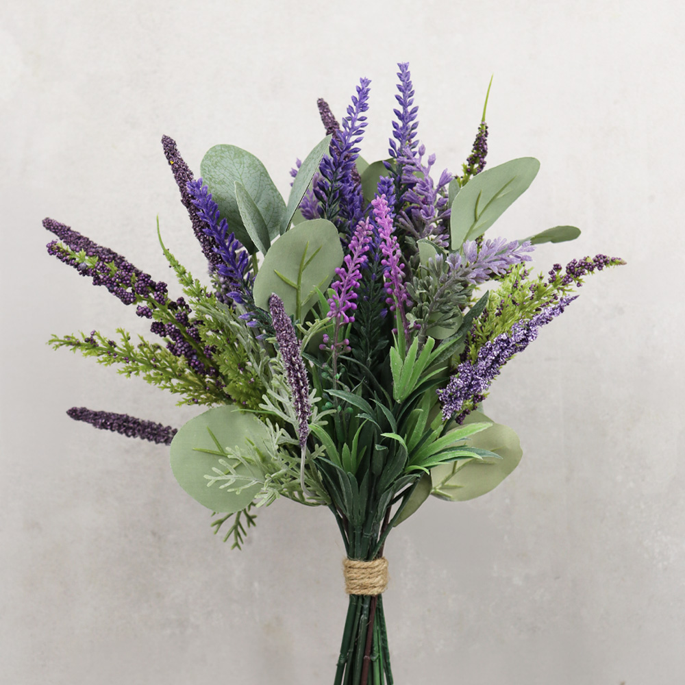 653-910 BOUQUET LAVANDE/EUCALYPTUS, VERT/MAUVE, 13,5"