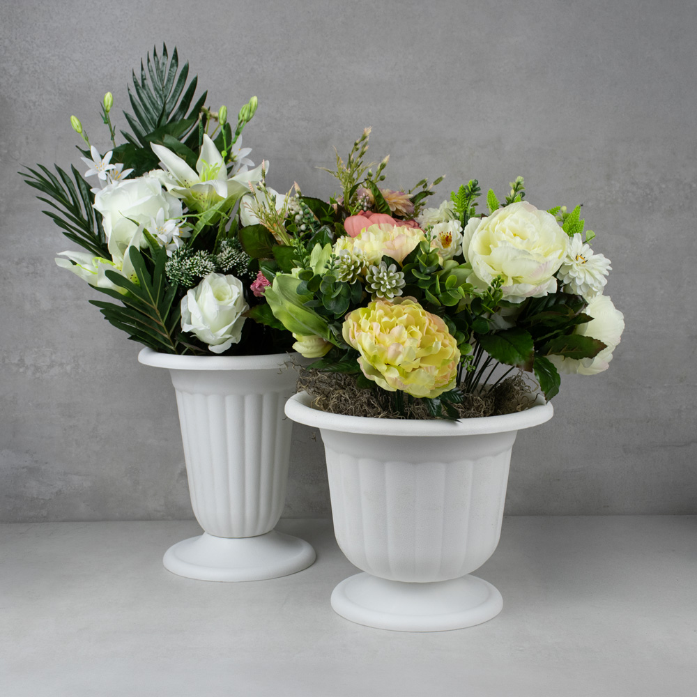 751-089 URNE PLASTIQUE SUR PIED #83, BLANC, 9 5/8" x 10 7/8"