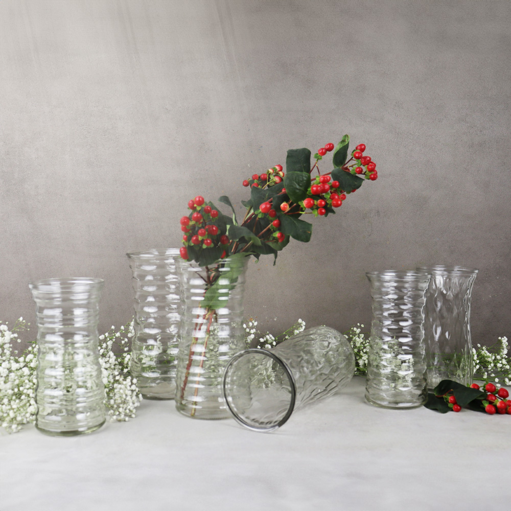 753-521 VASES DE VERRE ASSORTIS POUR ROSES #C972, CLAIR, 8½", BTE(12)
