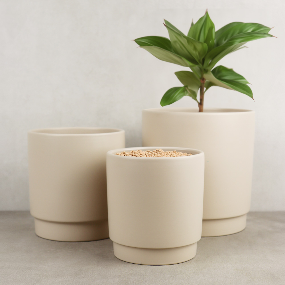 756-415 CACHE POT TERRACOTTA, BEIGE MAT, Ø5½" x 6", BTE(6)