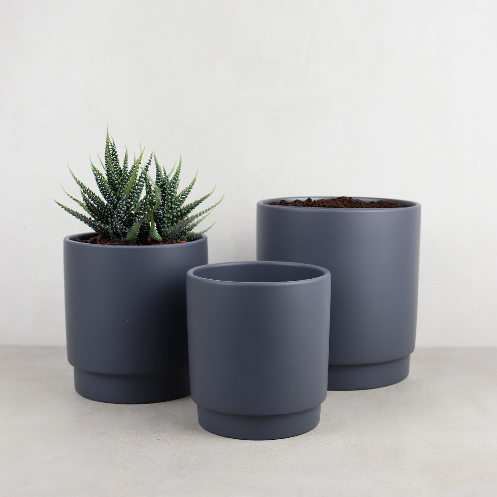 756-424 CACHE POT TERRACOTTA, BLEU MAT, Ø6¾" x 7¼", BTE(4)