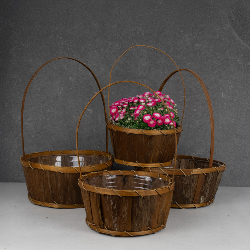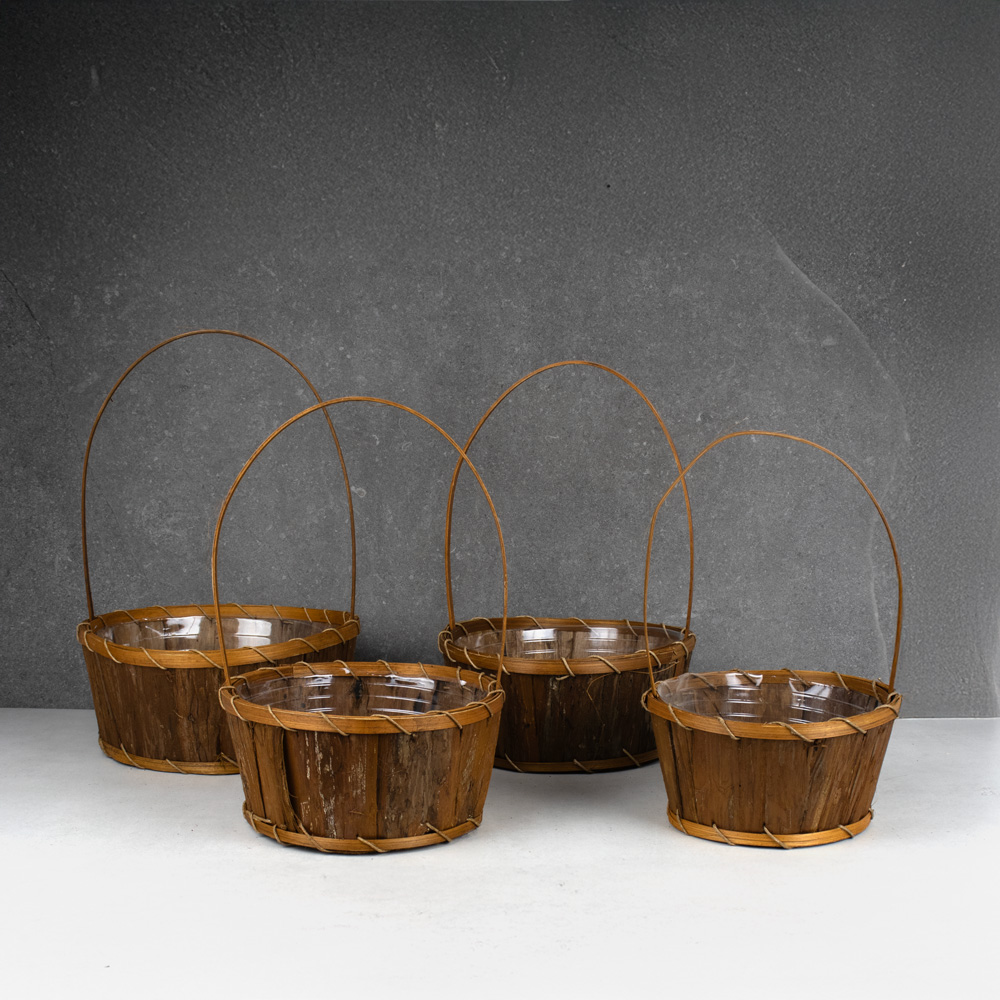 803-571 ENSEMBLE DE 4 PANIERS AVEC ANSES EN COPEAU DE BOIS, 8" - 9" - 10" -11"