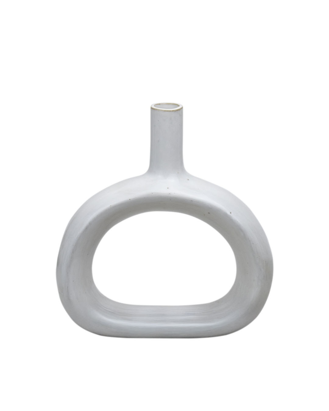 811-041 VASE EN CÉRAMIQUE, BLANC/GRIS, 8"x8½", BTE(4)