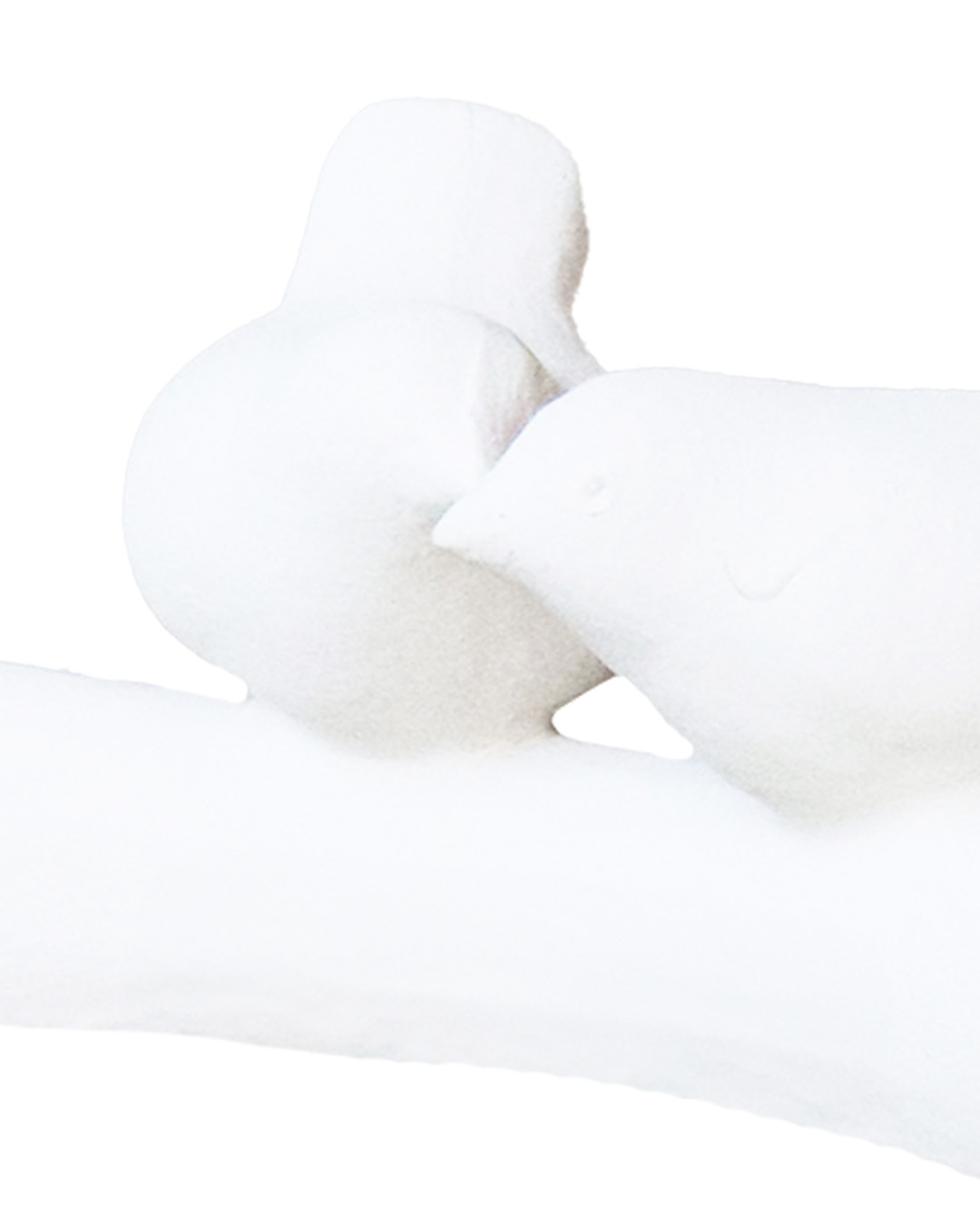 813-007 OISEAUX SUR BRANCHE, CRÈME, 8"x2¾"x3¼", BTE(4)